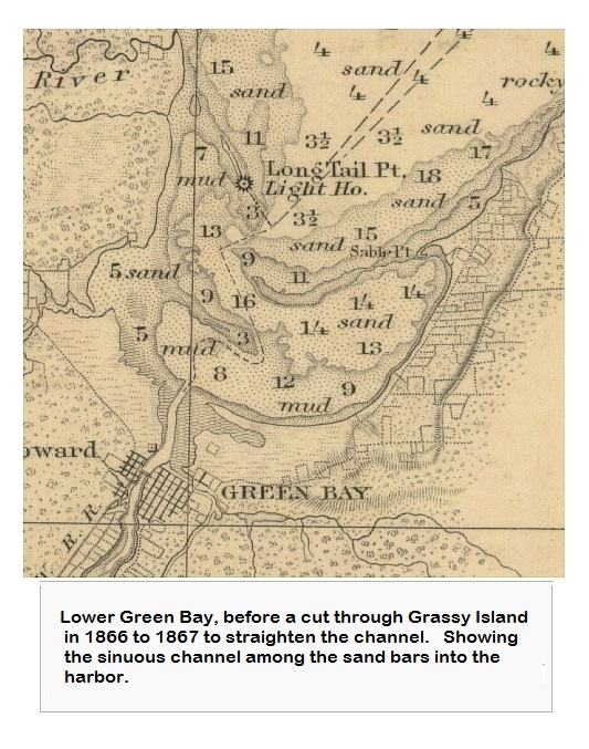 Long Tail Point shown below is the starting point for the first Lighthouses in the Lower Green Bay.