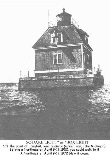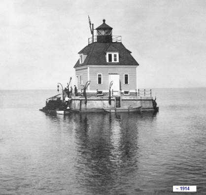 In 1899 a 3rd Lighthouse with fog bell was placed on a crib at the end of Long Tail Point. The fog bell was ![]() ![]() ![]()